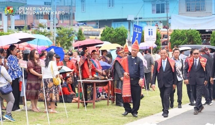Bupati Karo, Brigjen Pol (Purn) Dr. dr. Antonius Ginting, Sp.OG., M.Kes., dan jajaran Forkopimda ikuti Pawai Paskah Oikumene Kabupaten Karo Tahun 2026. Jumat (10/04/26).