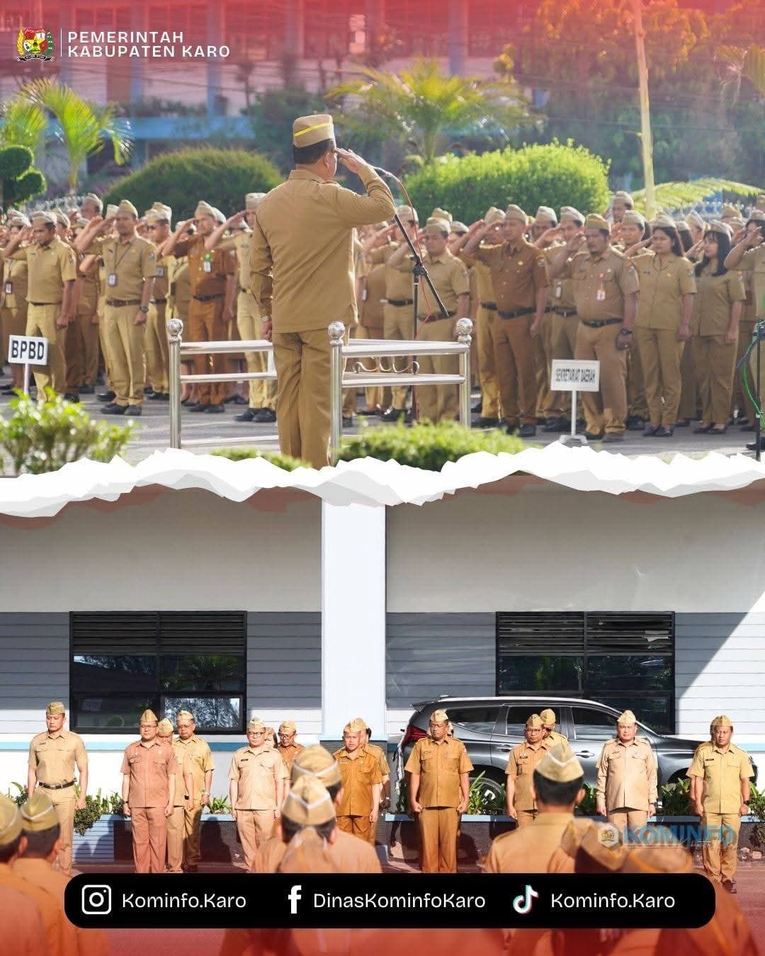 Apel gabungan ini diikuti oleh seluruh ASN dan pegawai Pemkab Karo, serta dihadiri oleh Wakil Bupati Karo, Sekretaris Daerah, dan para Kepala Perangkat Daerah.