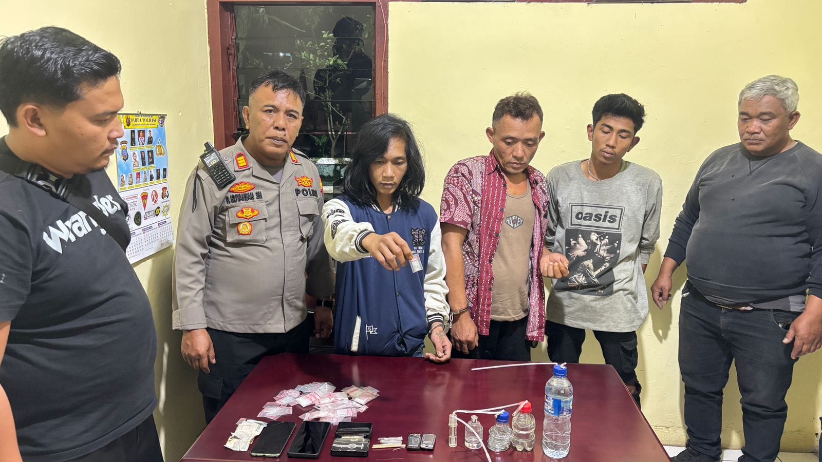 Sesampainya di lokasi,salah seorang yang mengetahui kedatangan petugas langsung melarikan diri,tetapi petugas berhasil mengamankan tiga orang di dalam rumah,dari hasil penggeledahan di dalam rumah,petugas berhasil mengamankan alat-alat yang digunakan mengisap sabu -sabu, seperti bong, beberapa pelastik klip dan pelastik klip berisikan serbuk putih di duga sabu-sabu.