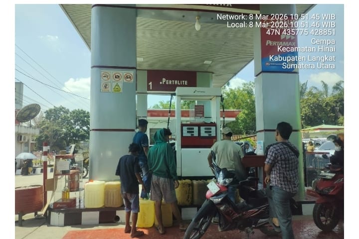 LANGKAT – MEDAN EKSPOS,ID |Stasiun Pengisian Bahan Bakar Umum (SPBU) di Desa Cempa Kecamatan Hinai Kabupaten Langkat propinsi Sumatera Utara diduga menjual BBM menggunakan jerigen, meski sebelumnya terjadi kelangkaan bahan bakar.senen (9/3/2026)